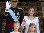 Una recepción, 2.000 invitados, toda España. Decenas de miles de personas ovacionaron a los nuevos Reyes en el balcón del Palacio Real, en una emocionante acogida junto a Don Juan Carlos, Doña Sofía y las Infantas.