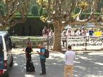 A las puertas del Parlament empiezan a congregrarse algunos manifestantes con pancartas relativas a expedientes de regulación de empleo y despidos.