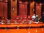 Todo a punto en la sala en la que Jordi Pujol ha de explicar el origen de su fortuna y su evasión fiscal.