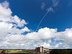En esta foto, la línea dejada en el cielo por el cohete durante el lanzamiento.