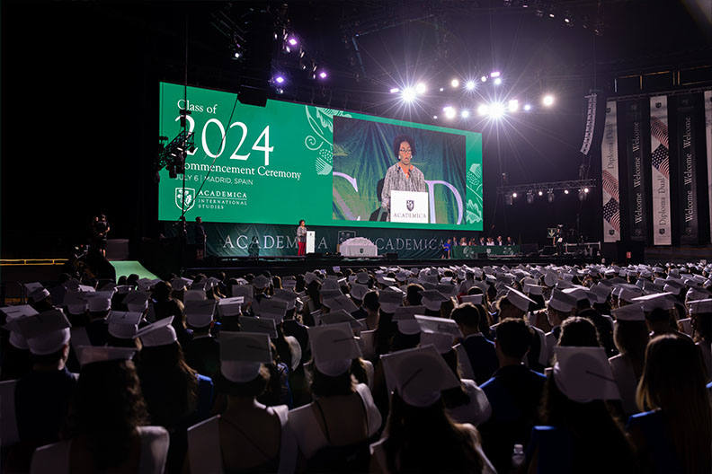 ACADEMICA convocó en el Palacio Vistalegre Arena de Madrid el 6 de julio a los 3.700 alumnos que han obtenido este curso el American High School – Diploma Dual® – en España. El evento “CLASS OF 2024” contó con la presencia de Mr. Manny Díaz Jr., Ministro de Educación del Estado de la Florida