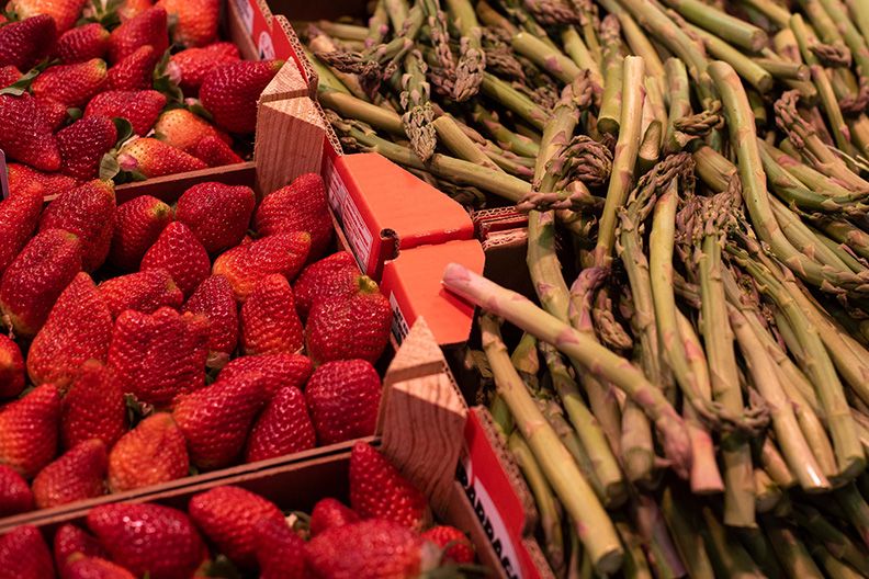 Productos de la huerta (©Sara Paniagua_Comunidad de Madrid) / Cita gastronómica en Aranjuez (©Belén Imaz_Comunidad de Madrid), Bodega Real Cortijo de Carlos III (©Kike Glez.Idonika_Comunidad de Madrid) y Tren de la Fresa (©Amador Toril_Comunidad de Madrid)