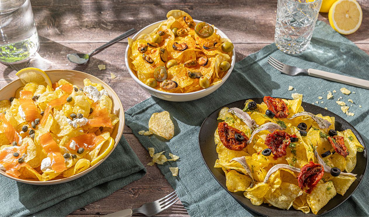 ¿La idea? Combinar ingredientes, sabrosos y bien elegidos, directamente sobre la patata crujiente para crear bocados fáciles, rápidos y sorprendentes.