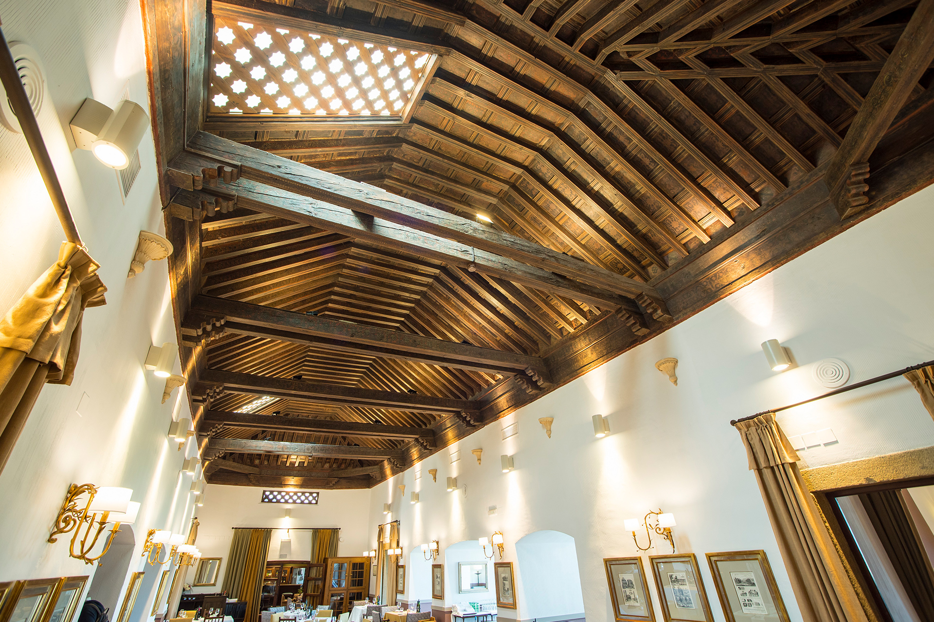 José Manuel Gutiérrez rememora cómo el Parador convivió en el mismo espacio con un coso taurino, un teatro, una escuela infantil e incluso el cuartel de la Guardia Civil. En 1930 el Ayuntamiento, su propietario entonces, cede una parte del edificio para abrir un Parador que ese año factura 540 pesetas. No era rentable, pero España necesitaba una red hotelera de primer nivel para fomentar el turismo. En esta zona, concretamente, el turismo cinegético. Tanto en el primer Parador, que abrió sus puertas en 1928 en Gredos, como en este cercano de Oropesa la caza ha sido clave para su éxito. Su Salón de los Cazadores debe su nombre a las cenas que protagonizaba don Juan de Borbón tras las cacerías.