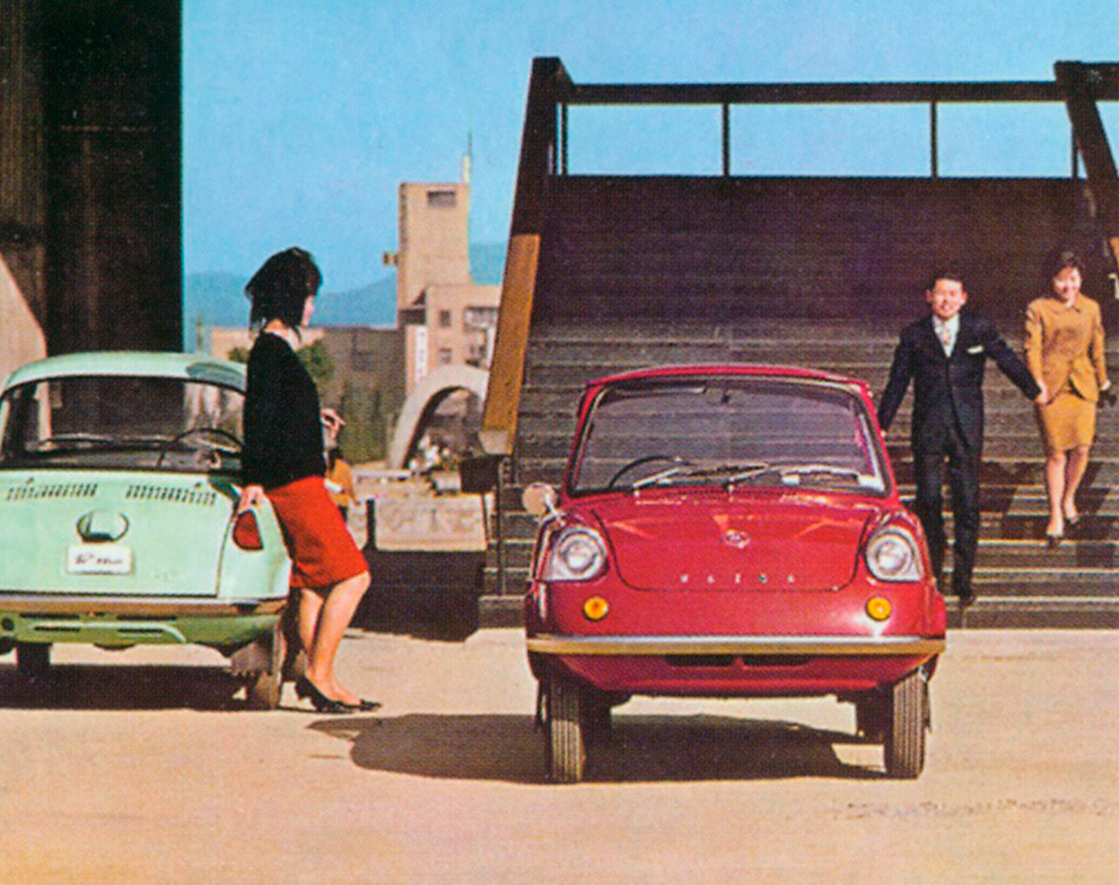 Tras el lanzamiento en 1950 de su primera furgoneta, Mazda lanza su primer turismo, el R360 Coupé.