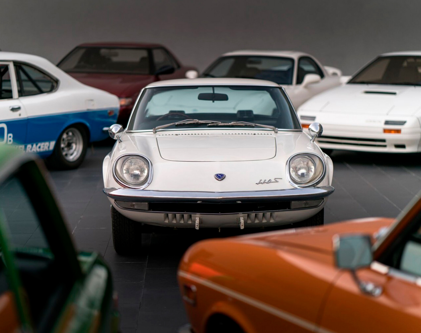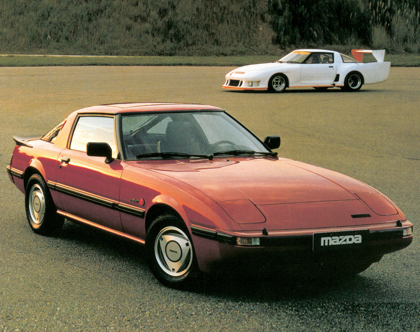 El primer Mazda Savanna RX-7 entra en escena. Un deportivo icónico que marcó tendencia y que incorporaba el famoso motor rotativo de Mazda.