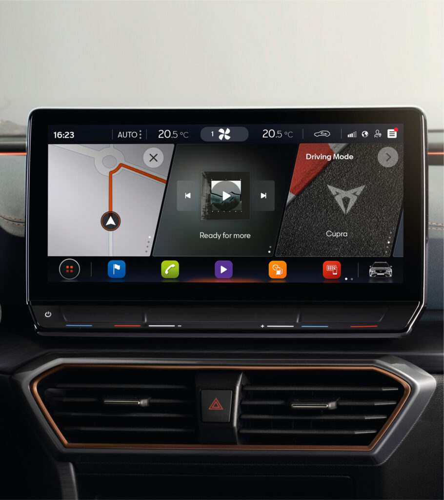 La pantalla de 12 pulgadas del sistema de infoentretenimiento incluye conexión Full Link compatible con Android Auto y Apple CarPlay. Con él, dile adiós a los cables.
