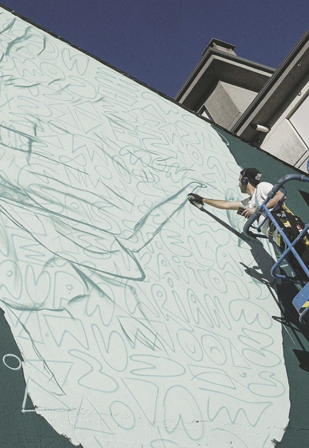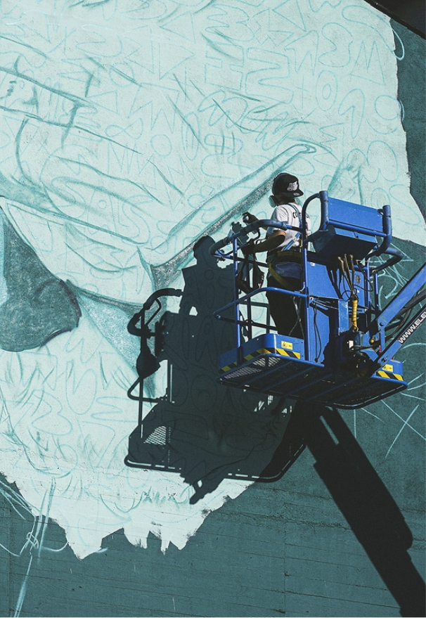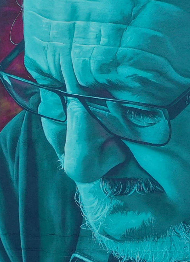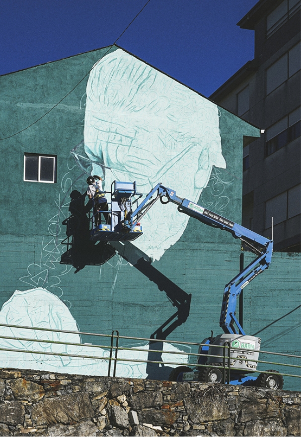 «Fue el primero que hice y fue el inicio de todo. Cuando estás empezando, pasas muchas etapas de inseguridad, por eso tardé mucho, más que en otros murales más grandes. Pero luego lo fui llevando por donde quería, y me gustó mucho. La pose representa muy bien su trabajo de paciencia y de artesanía milimétrica, lijando poquito a poco el violín. Yo quería que se viera esa delicadeza, que se percibiera que está mirando súper concentrado». Mon Devane, artista urbano que ha pintado los murales.