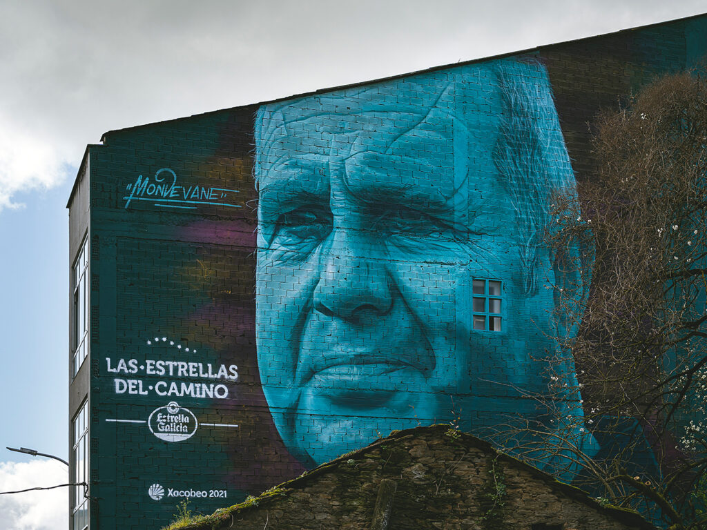 De fondo, mientras lo cuenta, se escucha pelearse a dos gallos. Le pregunto cómo va a poner paz y no lo duda: «Esto se acaba enseguida, en cuanto mande a uno a la cazuela», suelta inesperadamente. Es imposible hablar con Mario y no reírse, igual que es imposible no viajar mentalmente a los prados verdes de Galicia cuando habla de su Santa Mariña, la casa rural sostenible y ecológica en la que acoge con los brazos abiertos a visitantes y peregrinos. Precisamente por su hospitalidad y generosidad y su respeto por nuestro planeta, el rostro de Mario forma parte de la colección de murales con los que la marca de cerveza Estrella Galicia quiere homenajear a las personas que viven alrededor del Camino de Santiago y lo hacen único. Una exposición artística que recorre, a lo largo de 140 kilómetros, las últimas siete etapas del itinerario francés.