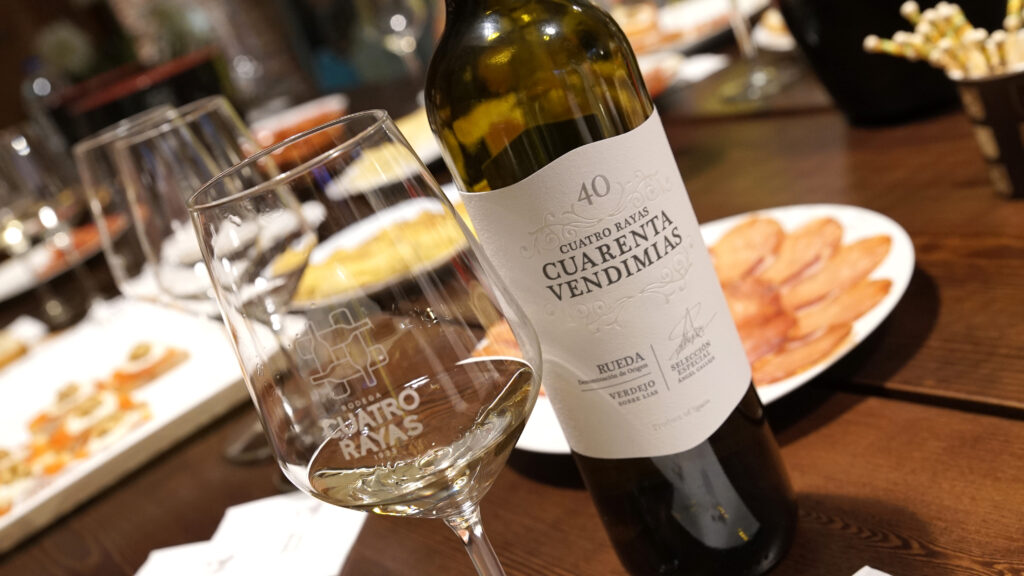 En la primera parada de este viaje enológico se cata un Cuatro Rayas Vendimias Verdejo. Un vino armónico y de aroma intenso, fiel recuerdo de los Verdejos tradicionales, que pone al alcance de los visitantes catadores el espíritu genuino de la Denominación de Origen Rueda. En la siguiente parada se cata un Cuatro Rayas Cuarenta Vendimias Ribera del Duero. Un vino elaborado a partir de una selección de uvas Tempranillo procedentes de viñas de, al menos, cuarenta años edad, y con diez meses de paso por barrica. Un vino que recoge la esencia de los tintos de Ribera para acompañar la potencia de la tradicional sopa castellana, aderezada con ajo, pimentón y aceite. Para cerrar la experiencia el vino escogido es un Cuatro Rayas Cuarenta Vendimias Sauvignon. Un vino con notas balsámicas y aromas frutales y florales que marida con el postre artesanal por excelencia de la Semana Santa castellanoleonesa; las torrijas con miel.