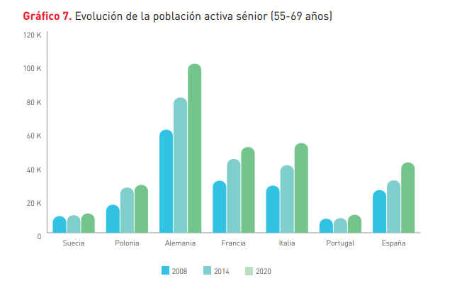 Los sénior europeos se han convertido en el grupo más importante en factores tan relevantes como el consumo, el patrimonio y el censo electoral. Además, según el estudio, los españoles trabajan menos años de media que otros países europeos como Suecia. Se trata, en definitiva, de una fuerza nada despreciable para convertir el envejecimiento demográfico del mercado laboral en una oportunidad para todos.