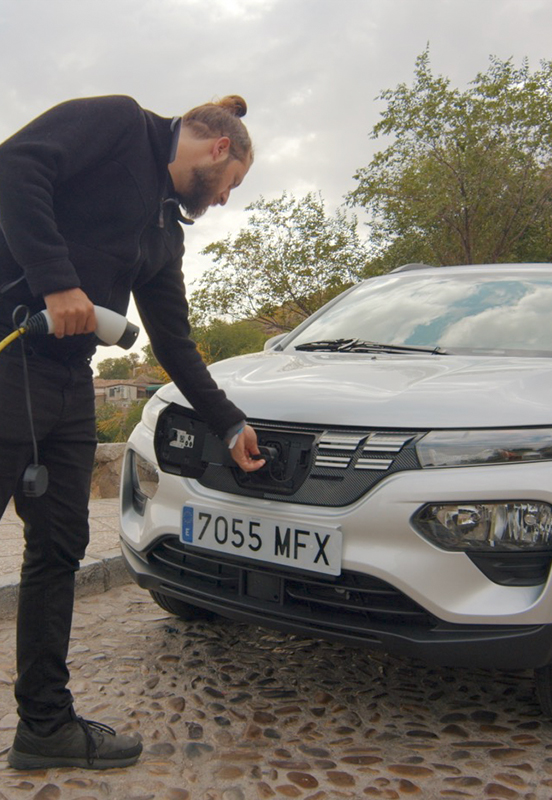Para personas inquietas como Kike, es vital tener cubiertas sus nececiades para poder centrarse en lo importante y en lo que le gusta. Por ello, uno de los coches que mejor se adaptan a esta filosofía es el Dacia Spring. Un modelo 100% eléctrico que permite hacer lo que realmente te gusta (y necesitas) sin grandes desembolsos. Fiel a los códigos de la marca, este vehículo urbano te ofrece un nuevo placer de conducción durante tus trayectos diarios.