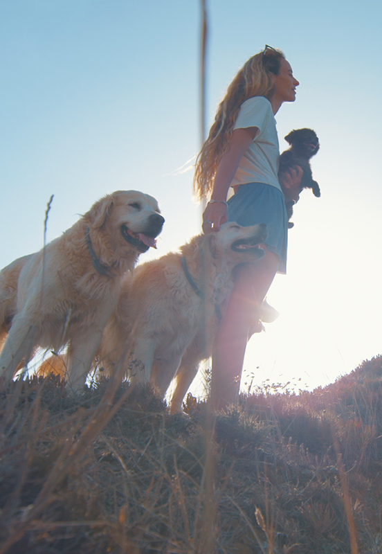 Eso sí: para Mireia, el concepto de familia es algo muy amplio. “No es necesariamente aquella en la que naces y que es sangre de tu sangre”, explica. “También es aquella que vas haciendo y construyendo en tu día a día: la familia son tus amigos, tus mascotas…” De hecho, los perros son parte esencial de la vida de Mireia: van con ella a todas partes, y disfrutan tanto como su dueña de la playa.