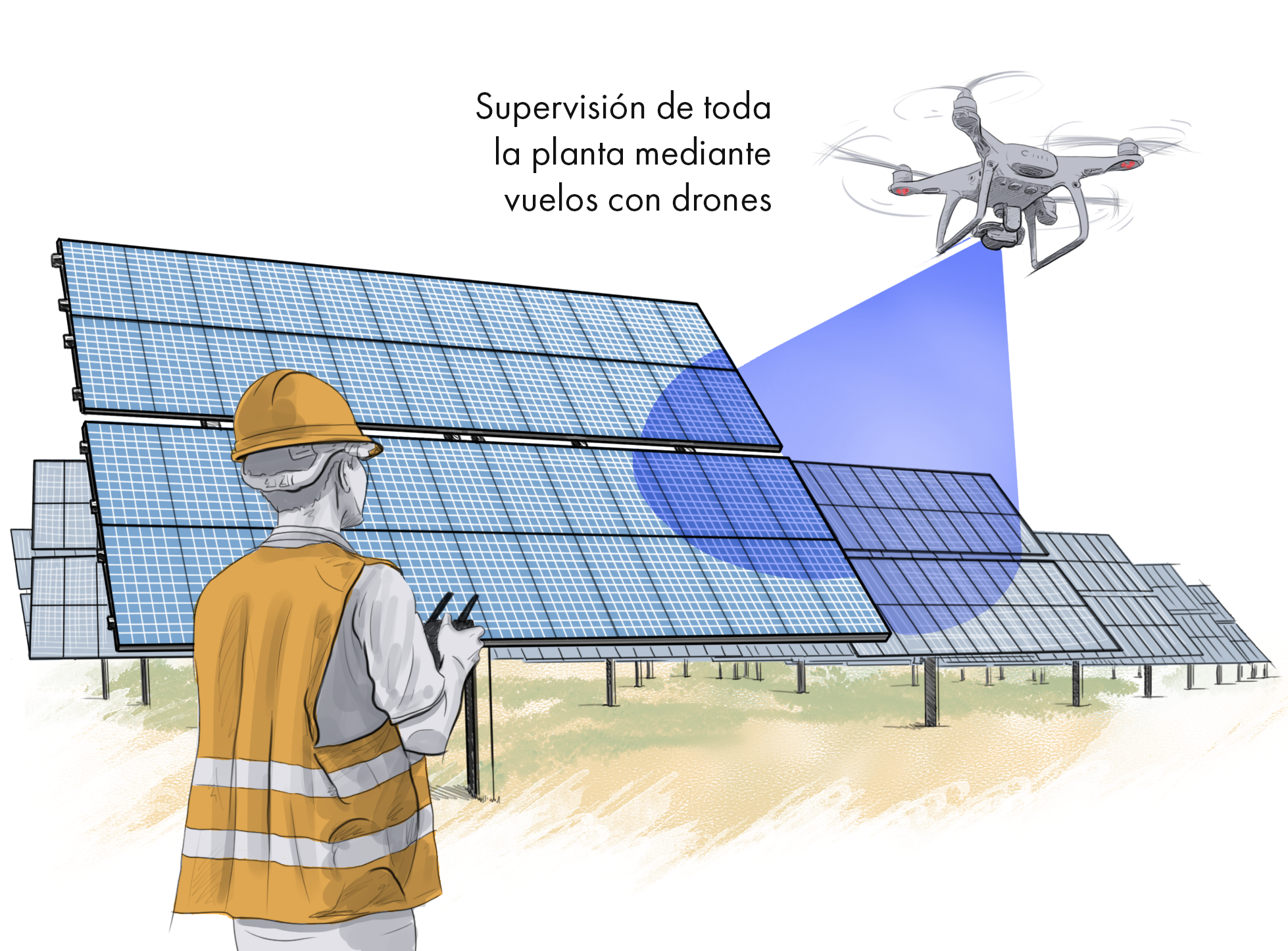 La construcción de una planta solar fotovoltaica como Dulcinea exige también un importante esfuerzo de supervisión. Es muy importante controlar cómo se están desarrollando los trabajos y, para ello, es fundamental inspeccionar continuamente lo que ocurre. Un trabajo que se puede agilizar considerablemente con la ayuda de drones.