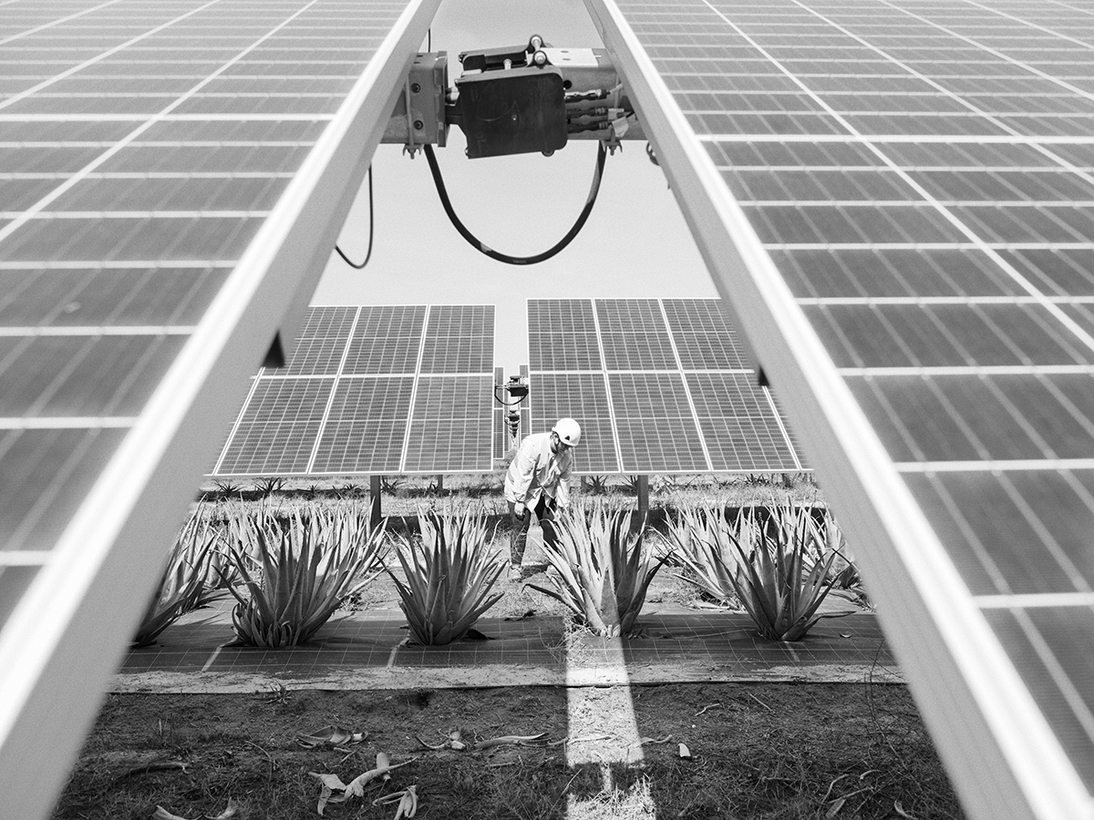Manuel recorre los paneles solares que a simple vista no dejan de ser un tapiz monocromo que flota sobre la tierra. Pero, en realidad, ese conjunto infinito de celdas sensibles a la luz encierra uno de los grandes anhelos de la Humanidad: la energía del sol. Los continuos avances han posibilitado que la eficiencia de estos dispositivos se haya incrementado exponencialmente desde los primeros pasos de esta tecnología en la década de los 80. Una circunstancia que la ha transformado en un actor trascendental en este proceso de transición energética que persigue desacelerar el cambio climático. Frente a este objetivo global tan razonable se encuentra con la incertidumbre que inunda a quienes ven cómo su puesto de trabajo se desvanece o, en el mejor de los casos, también se modifica.