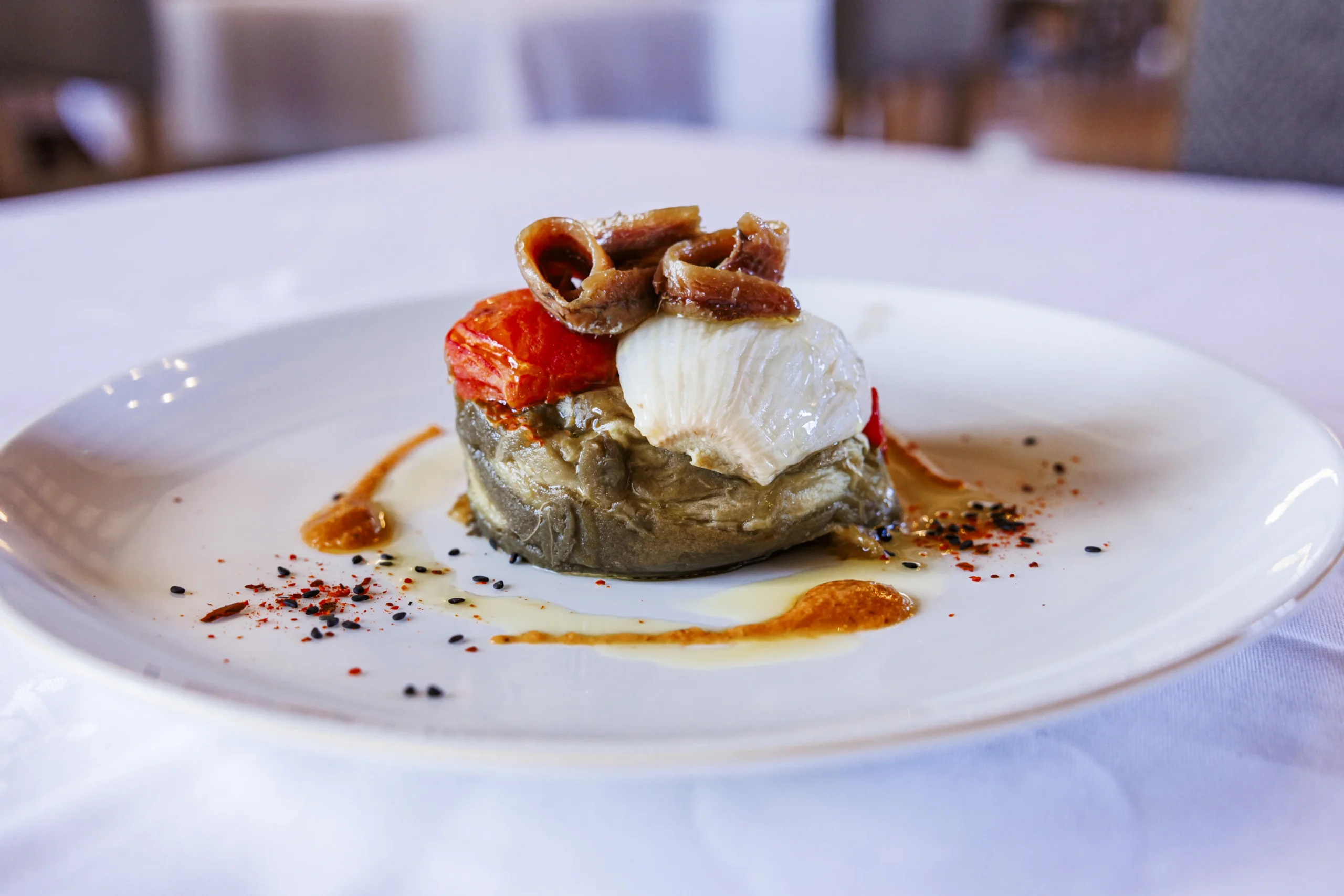 El Parador de Tortosa cuenta con un chef con personalidad. Carlos Martín es un gaditano que —sorprendentemente— vive la cocina “como una válvula de escape”. Las comandas, la tensión y las temperaturas de un servicio no le ponen nervioso. Cuando era más joven estudiaba guitarra en el conservatorio, pero cambió la melodía y los acordes por el gorro de cocina. No obstante, es un hombre creativo al que le gusta “innovar cuanto sea posible” para sorprender a los comensales. “Cuando estoy en casa le doy muchas vueltas a la cabeza para ver cómo puedo darle la vuelta a algún plato”, explica. El punto de inflexión de su carrera fue la formación del Basque Culinary Center, donde aprendió que no hay combinaciones imposibles, sino que hay que investigar cómo conseguir la receta adecuada. Carlos afirma: “Hay que mezclar conocimiento y experiencia. Yo no puedo dejar de lado mi formación como jefe de cocina”. Quizá por eso presenta sus platos con una sofisticación que lo diferencia de los demás. Le gusta ser atrevido sin renunciar a la tradición. En el menú destacan la escalibada de hortalizas con anchoas, un entrante sencillo y sabroso que manifiesta la calidad de la materia prima de la zona. Pero sus atractivos principales son, cómo no, los arroces: caldoso de calabaza y setas o el caldoso de galeras. Sorprende el equilibrio que ha conseguido Martín en el arroz costa del Ebro “tot pelat”. Para culminar la experiencia, los finales dulces son los mejores. En este caso, con una crema catalana, crema de naranja y chocolate o la mousse de “mel i mató”.