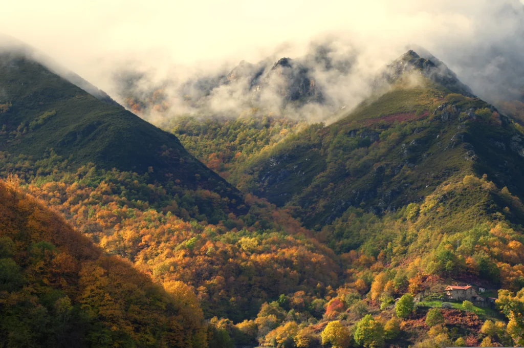 La siguiente parada nos lleva al Parque Natural de Redes, también situado en Asturias, un verdadero paraíso para los amantes de la naturaleza. Este espacio, cubierto por amplios bosques que invitan a la exploración, es famoso por su rica biodiversidad, albergando especies emblemáticas del norte de la península como el oso pardo, el urogallo y el lobo.