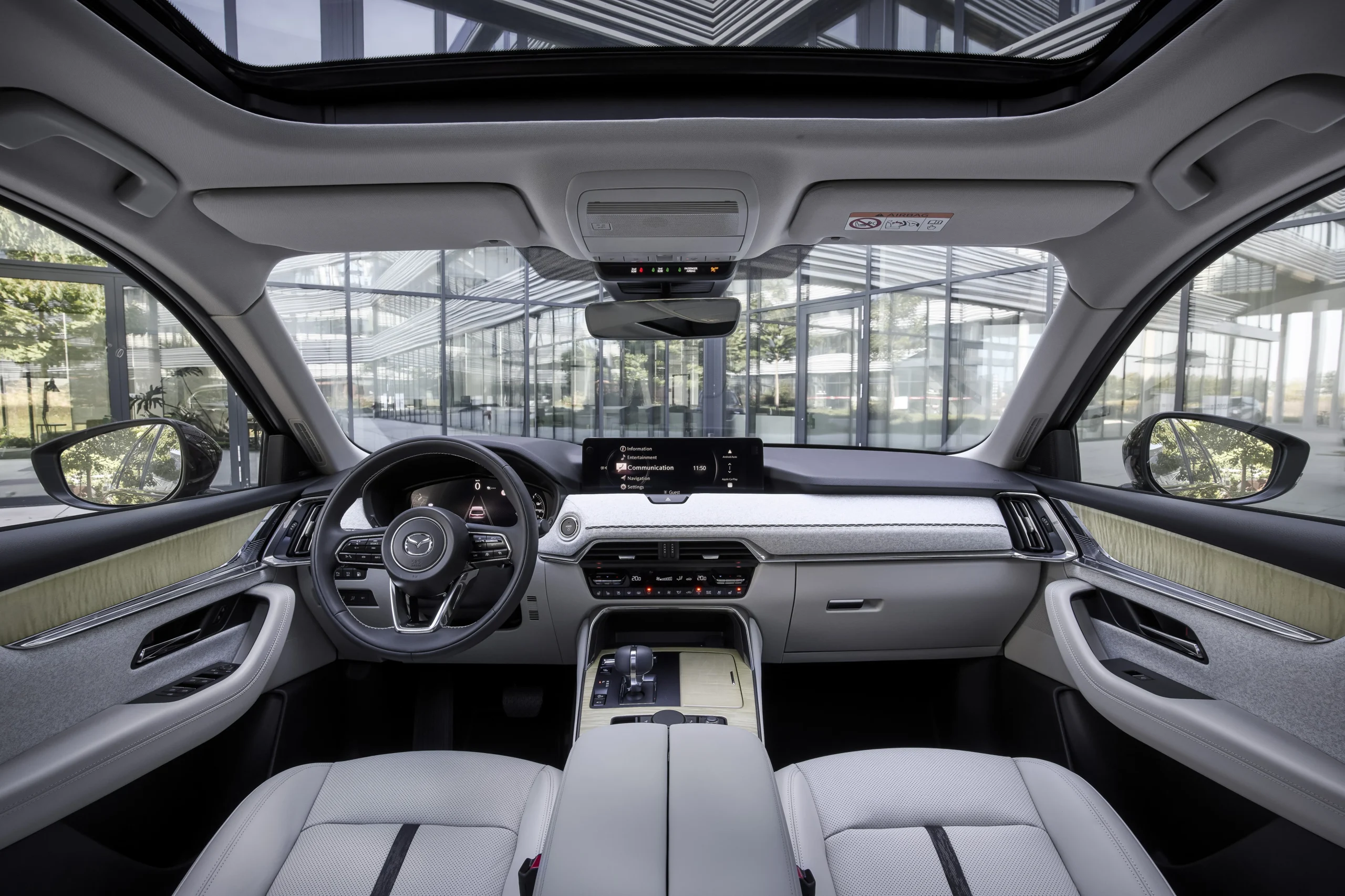 Las dos motorizaciones se complementan con una transmisión automática de 8 velocidades y con el sistema de tracción total i-Activ AWD de Mazda. Además, incorpora el selector Mazda Intelligent Drive (Mi-Drive) que ya se introdujo con el CX-60 y que permite elegir entre cuatro modos de conducción (más el modo EV en la versión PHEV).