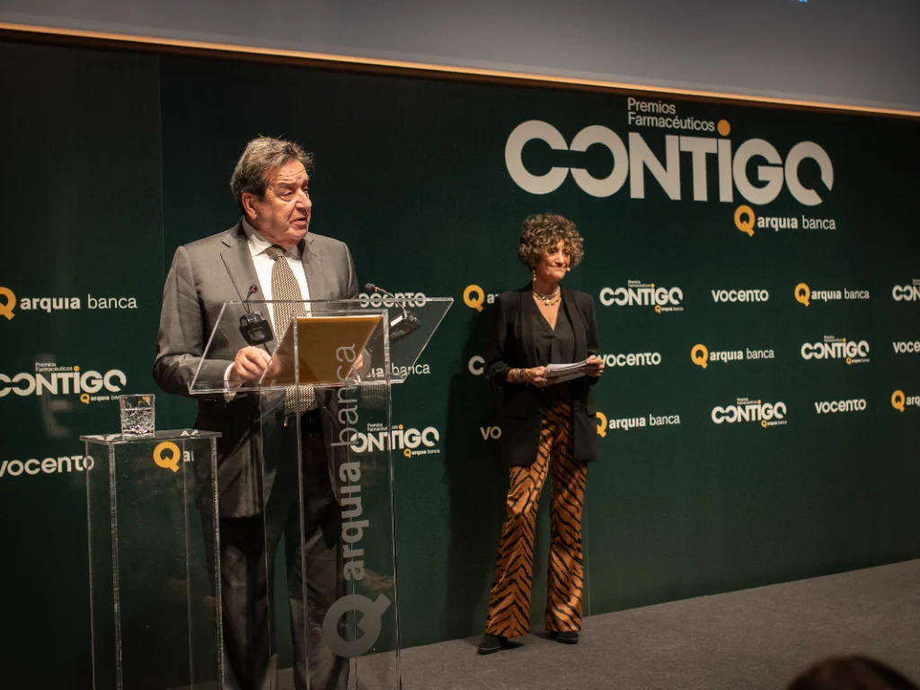 La Trayectoria Destacada premiada en esta primera edición de los Premios Contigo de Arquia Banca fue la del pacense Cecilio José Venegas Fito, vicepresidente de la Asociación Española de Farmacéuticos de Letras y Artes y presidente del Colegio de Farmacéuticos de Badajoz. En su discurso, Venegas Fito agradeció el apoyo prestado por “los colegios de profesionales, presidentes de asociaciones internacionales de farmacia y académicas de farmacia”. “Yo soy un firme defensor del sector bancario”, continuó, “porque creo que suministran la esperanza. Son el negocio de la esperanza”. Terminó su intervención con un recuerdo a los farmacéuticos de Valencia afectados por la DANA, para los que pidió el aplauso del público. “Solo en el diccionario el éxito va delante del trabajo”, concluyó. El premiado, ejemplo de científico humanista, dotado de una sabiduría que equilibra las ciencias y las letras, decidió donar los 2.000 euros del premio a Farmacéuticos Solidarios.