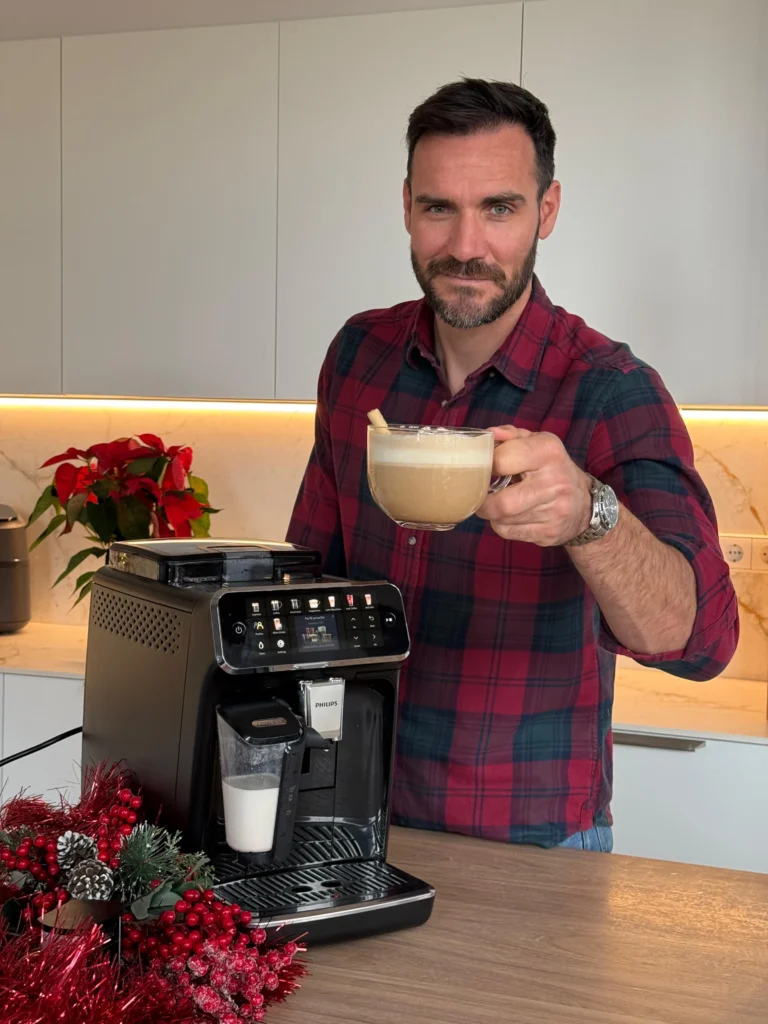 Y un detalle más a destacar en esta cafetera es su sofisticado espumador, que prepara la espuma de leche suave y sedosa incluso con bebidas vegetales. Ideal para una capa de espuma que corone cualquier café, o también para calentar la leche de un café con leche o un chocolate caliente, este último un uso frecuente en casa del piragüista para sus hijas.