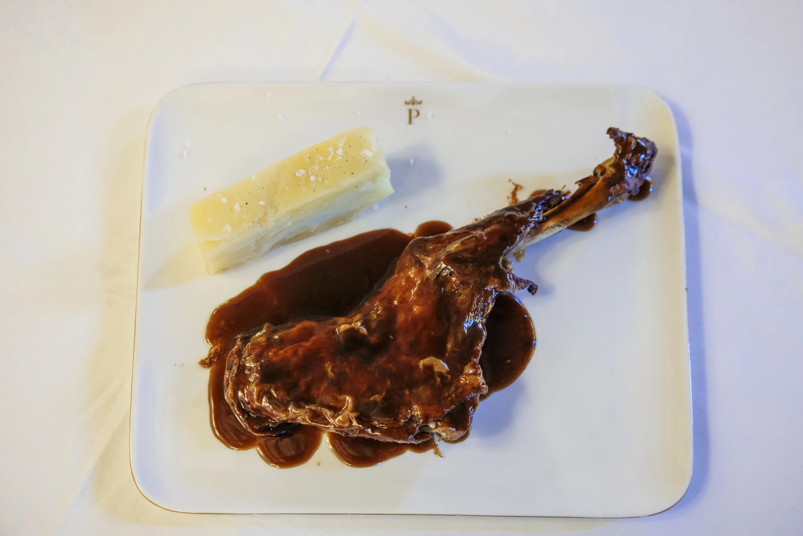 Los pesos pesados del menú son la paletilla de cabrito a baja temperatura con pastel de patatas, el canelón XL de pollo payés con bechamel y trufa, y el lenguado con salsa de ibéricos y tirabeques. Tenemos que ir por partes y decir que lo principal, a su juicio, es el “ingrediente”. “Lo fundamental para conseguir una experiencia gastronómica plena son los ingredientes frescos y de proximidad”, cuenta. Aunque hay que decir que la plancha de piedra volcánica también juega un papel en esta sinfonía de sabores. La paletilla “es el buque insignia”, el lenguado, “un ejercicio de sofisticación”, porque la salsa combina inesperadamente con el pescado y los tirabeques; y el canelón siempre es gratificante. Este fan de Dalí y del consultor gastronómico Jaume Fàbregas siempre busca una presentación llamativa, pero “sin trampa ni cartón”. Servalls comenta: “La carta no tiene que tener misterios. Al leerla, uno tiene que sentir confianza y saber que es familiar”. Como siempre en estas líneas, hay que dejar hueco para el dulce. Lo tradicional sería probar el postre del músico, pero Servalls se ha encargado de darle un punto más moderno. Normalmente, este postre es un vaso de moscatel acompañado de diversos frutos secos, pero aquí se sirve en un bizcocho de soletilla hecho con harina de almendra sobre “el que ponemos un almíbar de moscatel y chocolate blanco”.