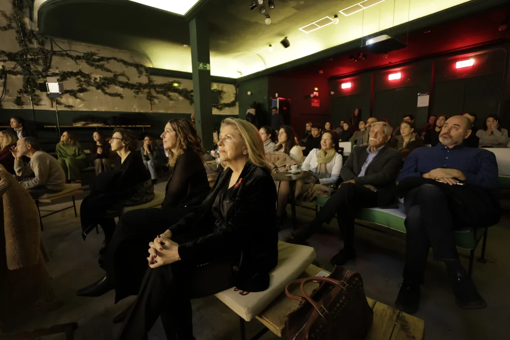 Público asistente a la proyección del documental The moVIHe; en primer plano, María Río, directora general de Gilead Sciences España y Portugal