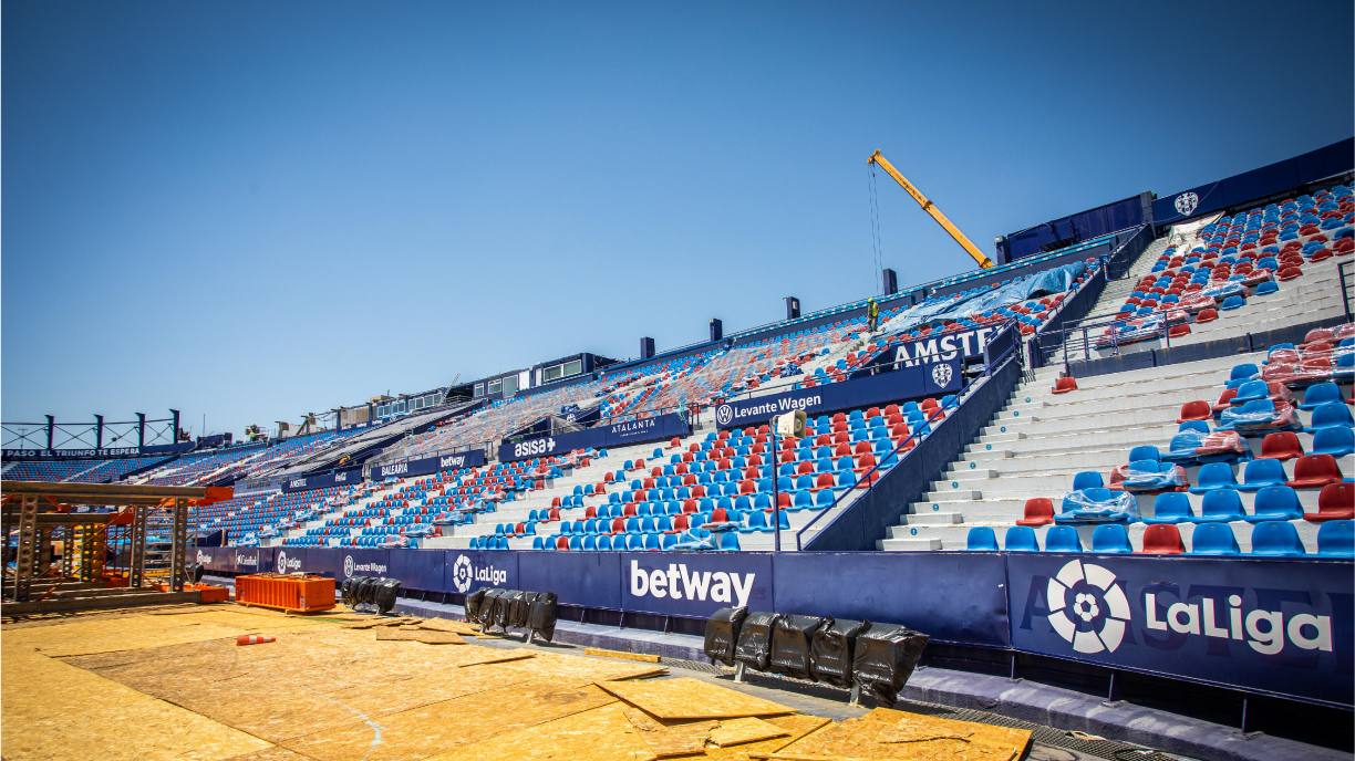 Tras varios años en la élite de forma continuada, el Levante apostó en 2019 por adecuar su estadio a su puesto en LaLiga Santander. Una obra que ha sido planteada en dos fases y que busca mejorar el templo levantinista de cara a la vuelta de sus aficionados