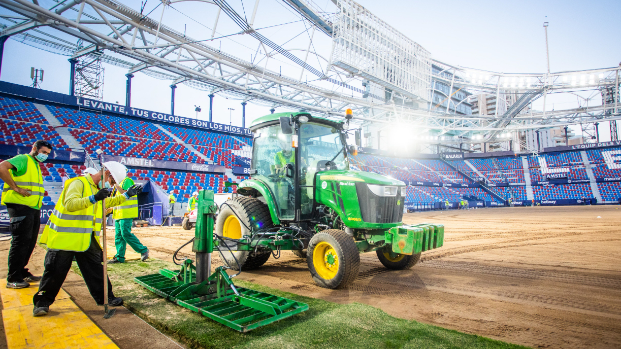 Para hacer frente a este contratiempo y a que, a consecuencia de ello, el final de LaLiga Santander 19-20 se retrasara a junio y julio, el Levante UD tuvo que encontrar un campo alternativo. “O aplazábamos la obra un año para poder jugar en nuestro campo el final de la competición, o buscábamos otro estadio para poder continuar. Al final se decidió buscar un estadio alternativo para jugar las últimas jornadas (La Nucía) y permitir que la obra avanzase. También tuvimos que empezar esta nueva temporada jugando algunos partidos fuera y utilizando en un par de partidos el estadio de La Cerámica, que nos prestó amablemente el Villarreal CF, para jugar de locales”, afirma.