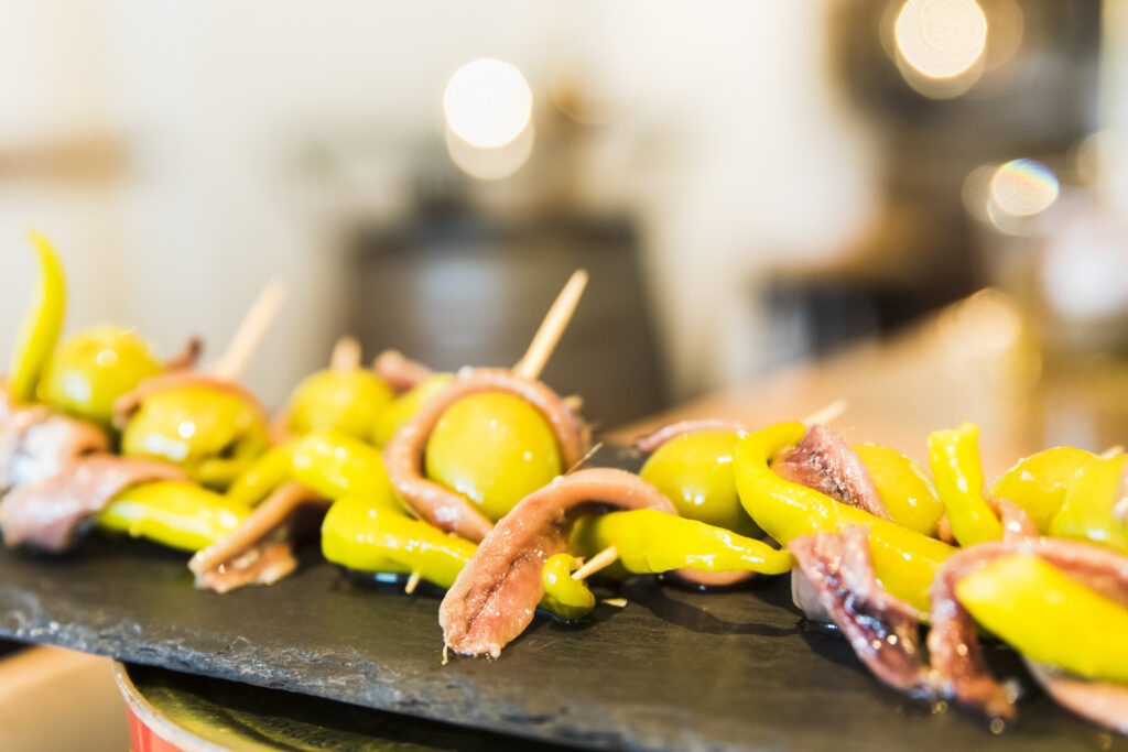 Gildas: también en un palillo, una piparra, con anchoa o boquerón por encima y con una aceituna como punto más alto.
