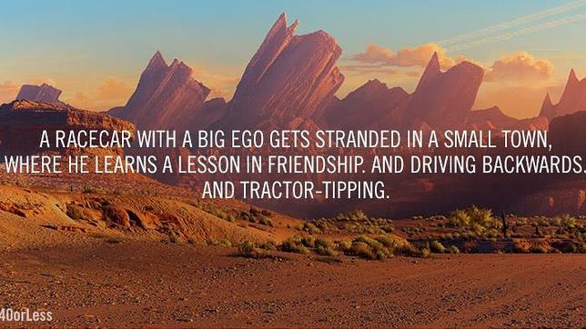 «Un coche de carreras con mucho ego se queda tirado en un pequeño pueblo, donde aprende una gran lección de amistad. Y a conducir marcha atrás. De propina, tractores».