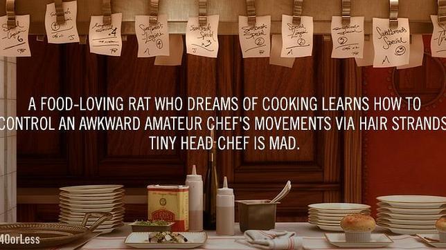 «Una rata que ama la comida y quiere cocinar aprende a controlar los movimientos de un cocinero a través del pelo. El chef chiquitito se cabrea».