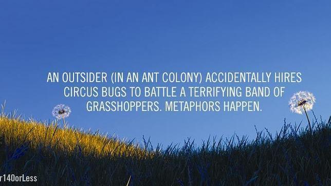 «Un forastero de una colonia de hormigas consigue, accidentalmente, que varios bichos de circo luchen contra una terrible banda de saltamontes. Hay metáforas».