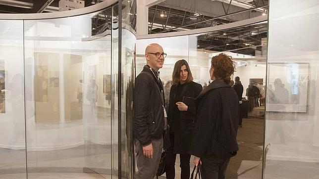 BELÉN DÍAZ Otro de los grandes nombres del arte extranjero presentes en ARCO es el norteamericano Dan Graham, cuya espectacular pieza «Tunnel of love» puede verse en el «stand» de la galería Nicolai Wallner de Copenhague. En la imagen, Rosario Nadal (centro), junto a la obra.