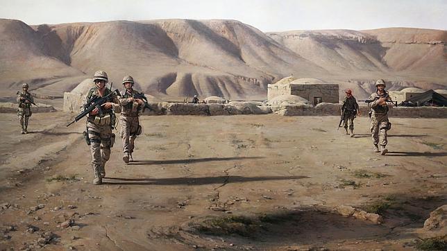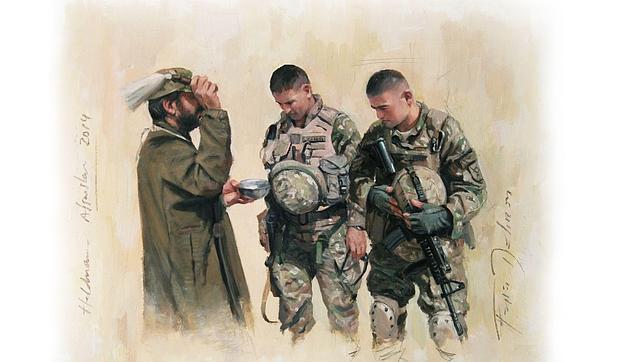 El primer cuadro de la guerra de Afganistán. En 2012, el pintor Ferrer-Dalmau convivió con las tropas españolas desplegadas en la provincia afgana de Badghis, llegando a destacarse en el puesto de combate avanzado «Ricketts, con la Brigada Paracaidista «Almogávares» VI.