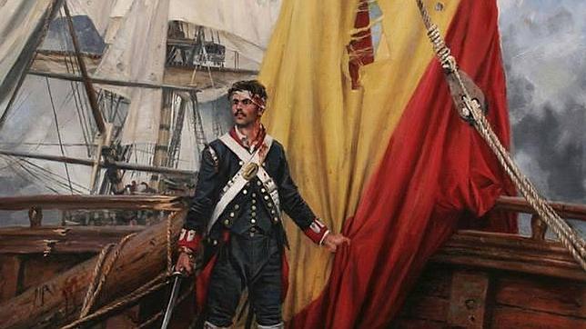Detalle del cuadro «Mi bandera», donde representa al granadero Martín Álvarez en la batalla del Cabo de San Vicente (14 de febrero de 1797) defendiendo la bandera de su navío el «San Nicolás de Bari» cuando toda la tripulación estaba muerta o malherida.