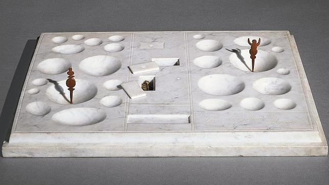 Entre las obras más más peculiares de la época surrealista del suizo están las «esculturas horizontales», concebidas como maquetas. Sobre estas líneas, «Se acabó el juego» (1931).