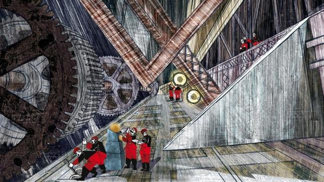 La belleza de estas páginas asombra. En formato rectangular, grande, incómodo para colocarlo en la estantería, parece que se desprende luz de algunas de las escenas que transcurren por la noche. En la ciudad de Marespuma, todos caminan con zancos sobre el agua. Leopoldo, el protagonista, tiene los zancos más altos y vive con la cabeza en las nubes, sin preocuparse de lo que sucede un poco más abajo. Al pasar las páginas aprenderá una lección.