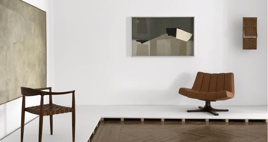 La cita, realizada por José de la Mano y Studiolire –dirigida por Reula y dedicada al diseño español del siglo XX– se ha organizado en torno a media docena de estancias. Espacios o ambientes acogedores en los que los objetos de diseño –mesas, sillas, lámparas cerámicas– dialogan con pinturas abstracto-geométricas y maquetas.