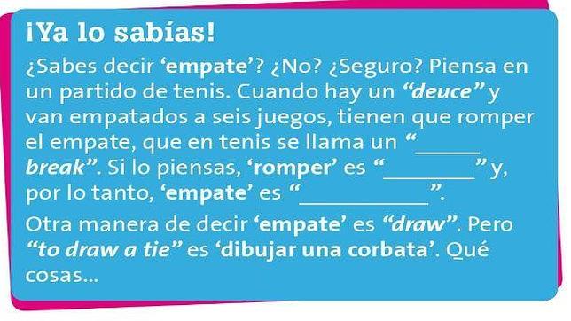 this is the milk Esta seguro que la sabías. Romper el empate en tenis es «tie break», luego empate es «tie».