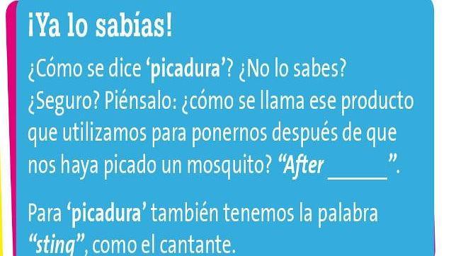 THIS IS THE MILK En este caso, la solución es «After Bite», luego la picadura de un mosquito es «bite».