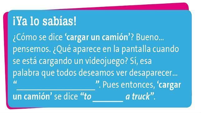 this book is the milk La respuesta correcta la has sabido seguro si has sido un buen jugador de videojuegos. «Cargar un camión» se dice «to load a truck».