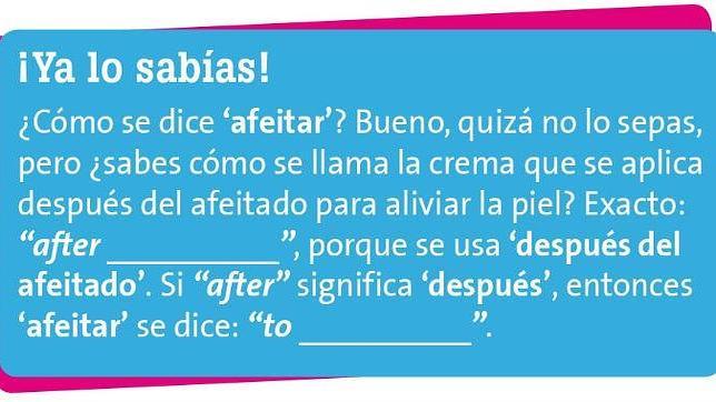 this book is the milk «¡To shave!», así se dice afeitar. Es otro de los claros casos de una palabra que muy probablemente no eras consciente de que sabías.