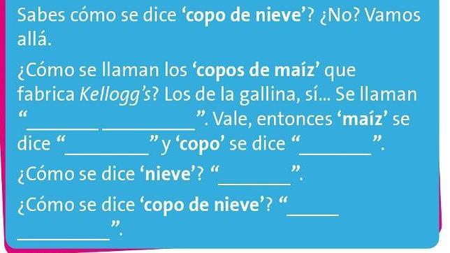 This book is the milk Otra prueba de cómo nuestro día a día nos ayuda más de lo que pensamos a aprender inglés. «Corn Flakes» son los cereales. Si «corn» es maíz, copo es «corn». Luego «copo de nieve» es «snow flake».