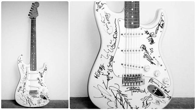 No consta que de esta guitarra haya salido un solo acorde, pero tiene el privilegio de ser la más cara jamás subastada. Se trata de una Fender Stratocaster blanca que se vendió en favor de las víctimas del tsunami de Indonesia en 2004. Su mayor tesoro es contar con las firmas de varios de los mejores músicos de todos los tiempos: Eric Clapton, Jimmy Page, Mick Jagger, Keith Richards, Ronnie Wood, Mark Knopfler, Angus y Malcolm Young o Paul McCartney. Precio en subasta: 1.991.300 euros.