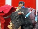 Sexto toro : «Olivito» , el toro que sembró el pavor en el encierro, ya está en el ruedo. En la plaza se mueve mucho con emoción y con nobleza. Saluda con los palos Curro Robles. Esaú se justifica con muletazos voluntariosos, pero falla demasiado con la espada. Seis pinchazos y cinco descabellos. Aviso. Silencio.