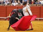 El tercero es muy deslucido. Eugenio de Mora está muy profesional y lo mete en la muleta con oficio, aunque no sea brillante. Sí es sólida la obra. Dos pinchazos y buena estocada. Silencio.