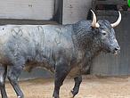 El quinto ya está en la arena. Horquillero, negro entrepelado bragado meano, de 520 kilos, número 68, con el guarismo 1.
