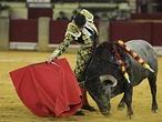 Arrollador El Fandi desde que se abrió de capote con largas cambiadas de rodillas rematadas con media también de hinojos en el mismo platillo de la paza. Vibrante con los palos. El toro, endeble de varas, acusó la falta de fuerzas ante la muleta, en series cortas y muletazos sueltos, en un trasteo a menos. Pinchazo y estocada. Silencio.