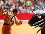 Serio también el toro de la jota, que Luque brinda a Padilla. Comienzo esperanzador, pero el toro se raja y se desentiende de los engaños. Insiste y el público se lo agradece. Estocada trasera. Hay ligera petición y el torero es ovacionado.