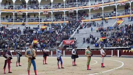 Más de seis mil espectadores «aguantaron» -bajo la lluvia y con frío ambiente, ¡qué mérito- esta infumable primera novillada de la Feria de la Comunidad de Madrid, que arrancó con un minuto de silencio por Palomo Linares . Su pasodoble fue lo más torero de la tarde.
